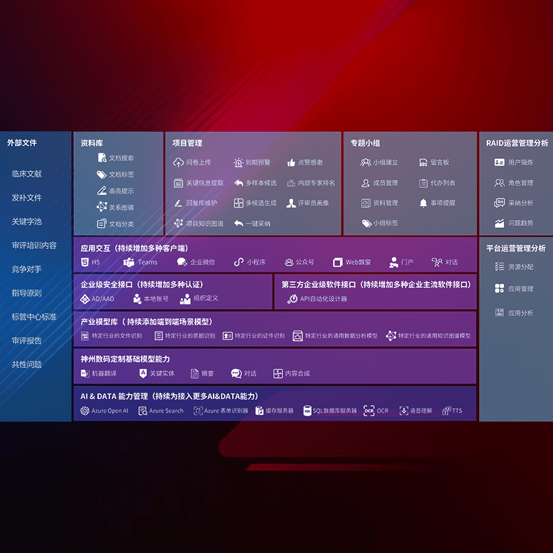 医疗器械产品上市前,,,要熟悉严格与繁复评审标准,,,整理分析监管机构指导文件中的海量信息。。。。企业急需一个智能化解决方案,,,,提升知识管理效率,,,提高评审通过率,,,,以提升其市场竞争力。。。。